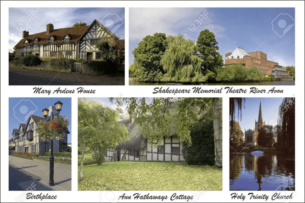 ¿Qué se puede ver? 1) La casa de Shakespeare. En este lugar nació y creció el dramaturgo más importante de la literatura británica. Abierta al público desde hace 250 años, todavía hoy se puede pisar el suelo original, ver el comedor familiar o las habitaciones en las que pasó los primeros cinco años de casado con Anne Hathaway. 2) La granja de Mary Arden. Fue el hogar de infancia de la madre de Shakespeare. Aquí podrás trasladarte a la realidad de una granja Tudor de verdad, con sus aromas, vistas y sonidos. 3) Hall’s Croft. Esta elegante casa Tudor es donde vivió la hija mayor de Shakespeare, Susanna, con su marido, el médico Dr. John Hall. Su hogar está decorado con opulencia y en el jardín hay una gran variedad de hierbas medicinales. 4) El «cottage» (la cabaña) de Anne Hathaway. En este precioso cottage con tejado de paja vivía Anne Hathaway antes de casarse con William Shakespeare. 5) Nash House y New Place. Una junto a la otra, Nash House fue propiedad de la nieta de Shakespeare, Elizabeth, y de su primer marido, Thomas Nash; mientras que New Place fue la casa en la que se estableció el escritor cuando ya era famoso y en la que vivió los últimos años de su vida hasta su muerte en 1616 (el mismo año que Cervantes). 6) Holy Trinity Church. En la Iglesia de la Santísima Trinidad están enterrados William Shakespeare, su mujer Anne Hathaway, su hija Susanna y el Dr. John Hall. Las tumbas están en el interior del templo. 7) Royal Shakespeare Company y teatros. El hogar de una de las compañías de teatro más importantes del mundo. Aquí es posible ver obras de Shakespeare todo el año. Finalmente, no te pierdas caminar y admirar el estilo Tudor de la arquitectura en general o caminar y relajarte a orillas del río Avon.