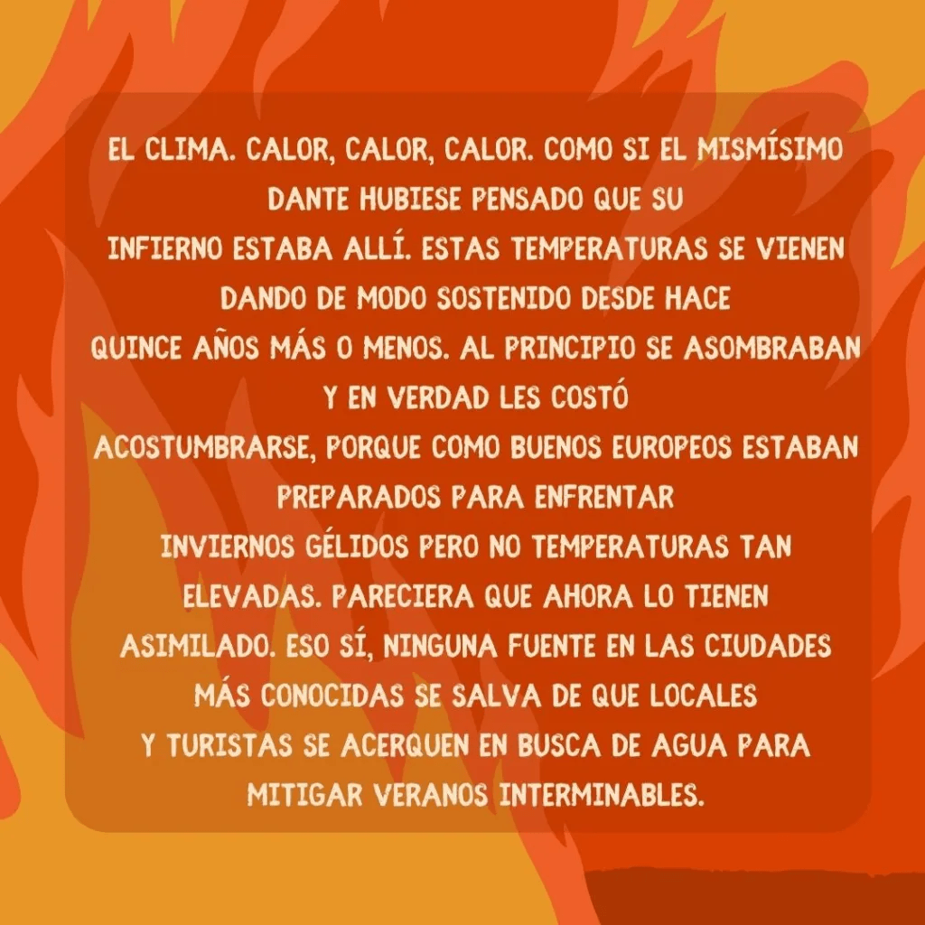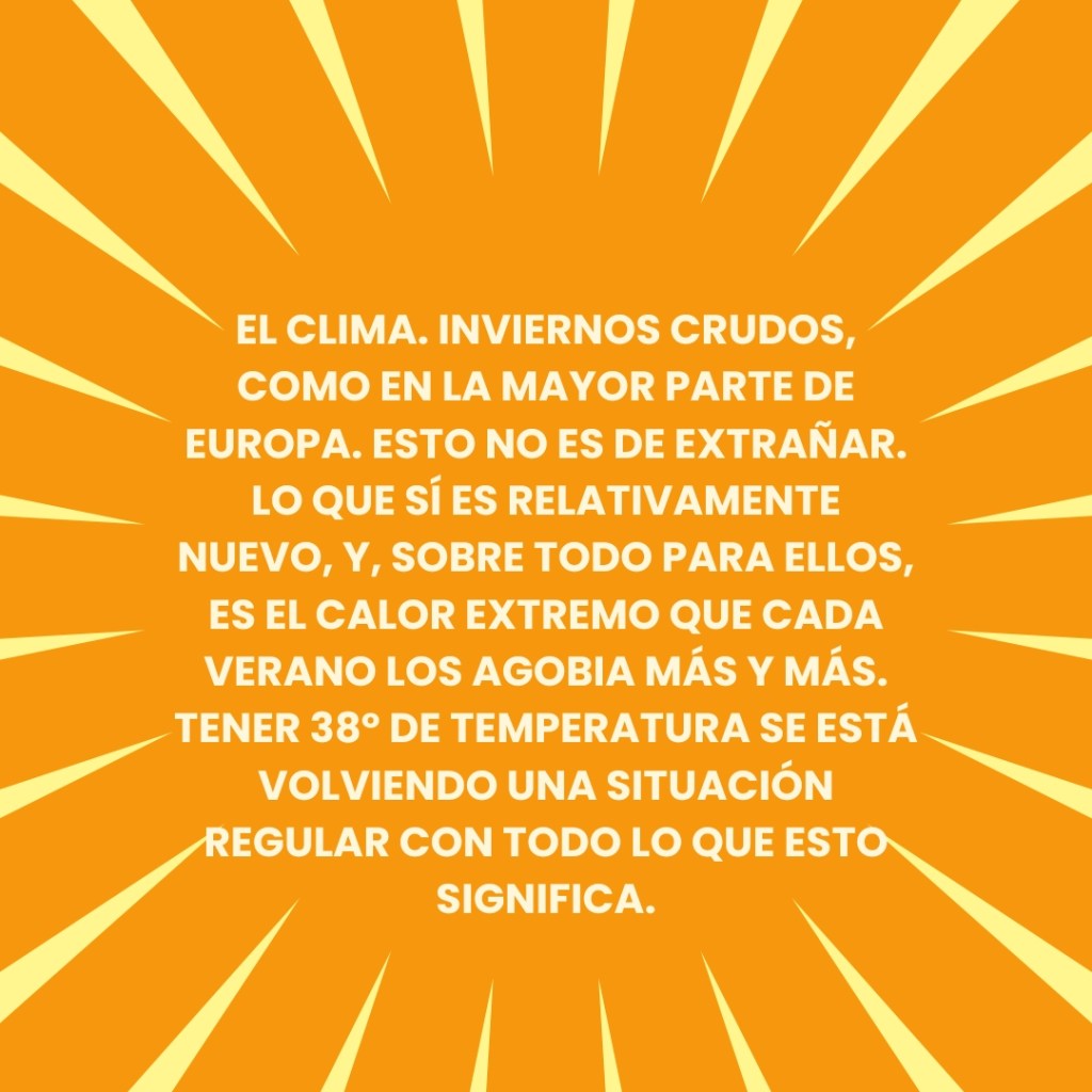¿El clima? No existe más la lluvia permanente que todo lo nubla, lo entristece y lo apaga. ¿Llueve? Por supuesto. Inglaterra tiene una posición geográfica que hace que la lluvia sea una parte inherente de su realidad, pero también tiene temperaturas infernales donde creés que estás en Rosario en enero y no en Londres en julio. El calor y la humedad llegan a agobiar, sobre todo en estos últimos diez años.